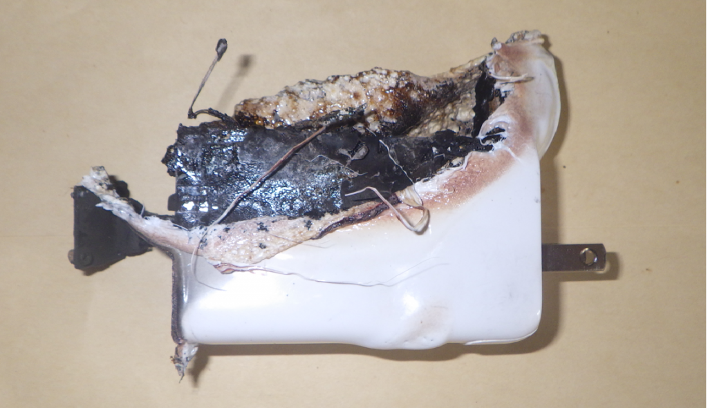 高温の車内などに放置したことでリチウムイオン電池が発熱し出火