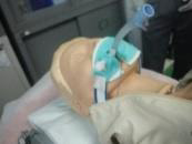 口にチューブを入れて空気の通り道(気道)を確保します。