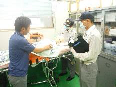 資器材準備出動途上の車内で活動をイメージしながら資器材を準備します。