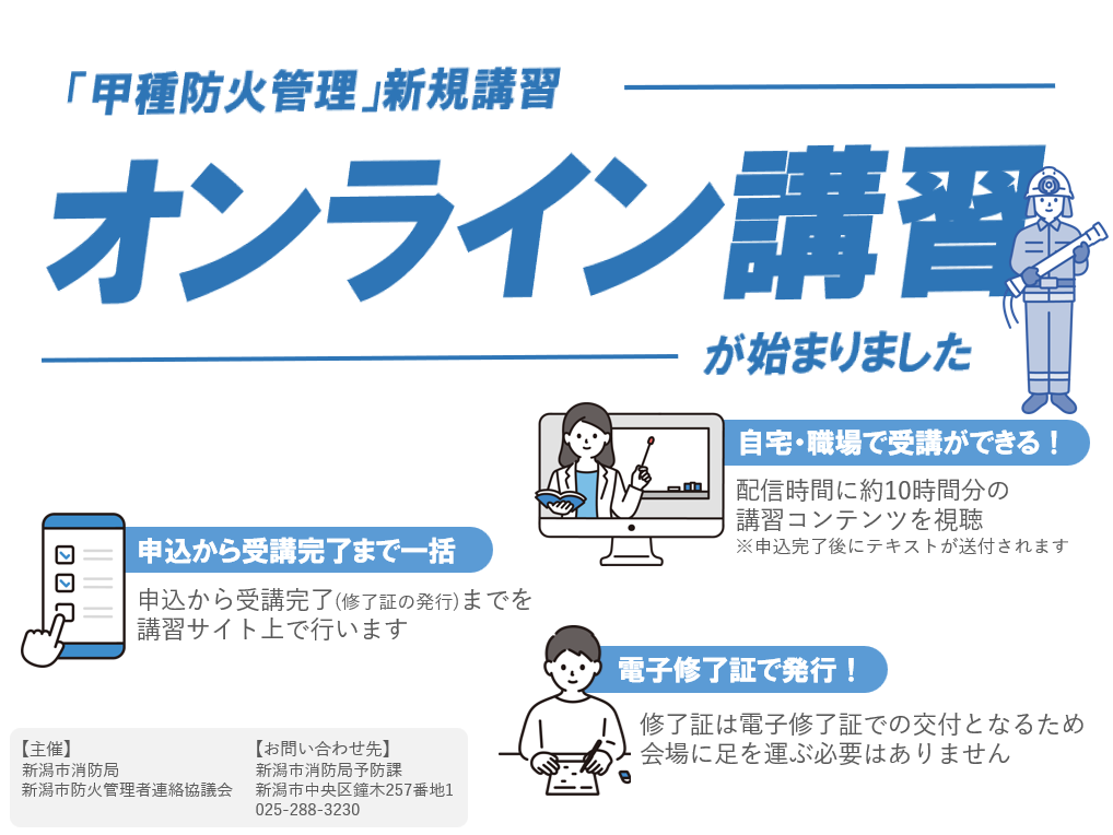 この講習は、新潟市消防局及び新潟市防火管理者連絡協議会が主催して開催するものです